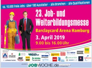 Über 180 namhafte Unternehmen präsentieren sich auf Norddeutschlands größter interdisziplinärer Karrieremesse von JOBWOCHE. Die 23. JOBWOCHE findet am 03. April 2019 von 9.00 bis 16.00 Uhr in der Barclaycard Arena Hamburg statt. Die Messe richtet sich sowohl an Berufseinsteiger als auch an Professionals, Wiedereinsteiger und Arbeitsuchende aller Branchen und Qualifikationen.