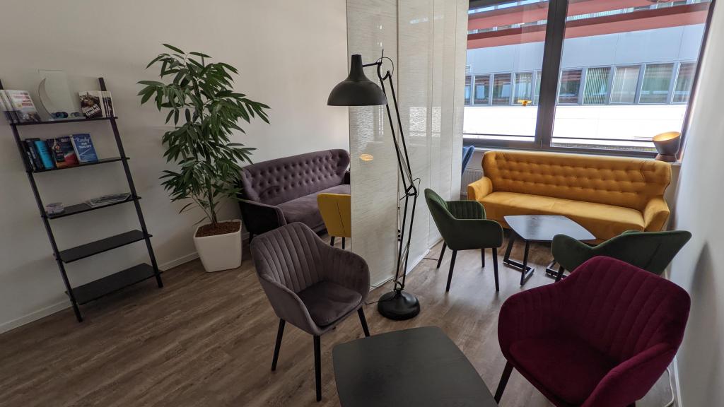 Mit unserer neuen Lounge, haben wir einen Raum geschaffen, der unseren Mitarbeitern die Möglichkeit gibt, sich dort zu entspannen, Teambesprechungen abzuhalten, ihn als Kreativraum zu nutzen etc. etc.