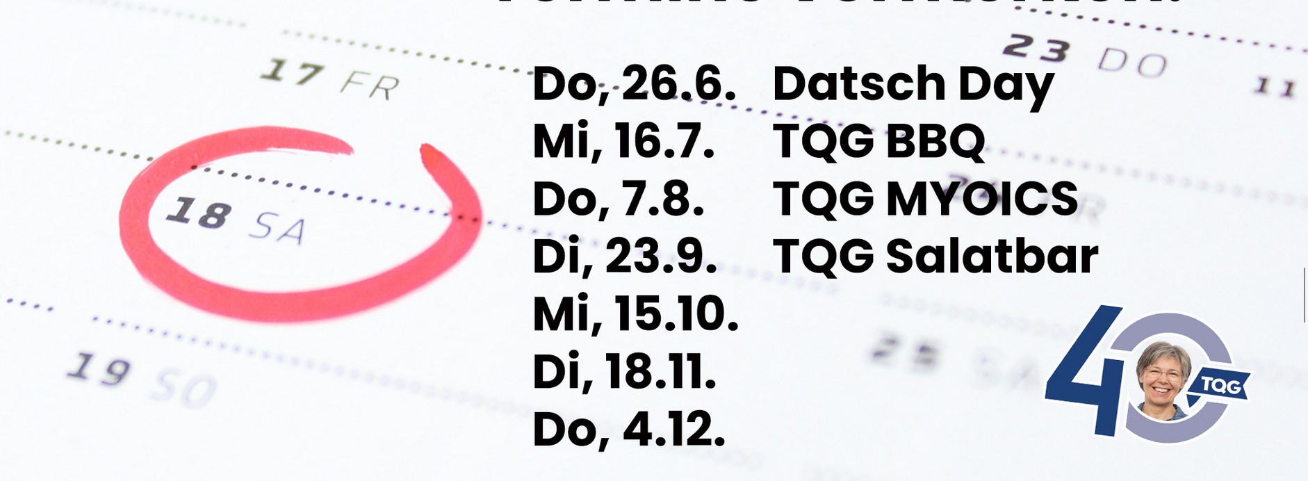 Das Feiern ging im September weiter mit der TQG Salatbar – erneut ganz im Zeichen von 40 Jahren TQG ✨✨✨✨. Diesmal äußerst knackig, frisch, bunt und gesund 🥗🥬🥕🍆😊.
